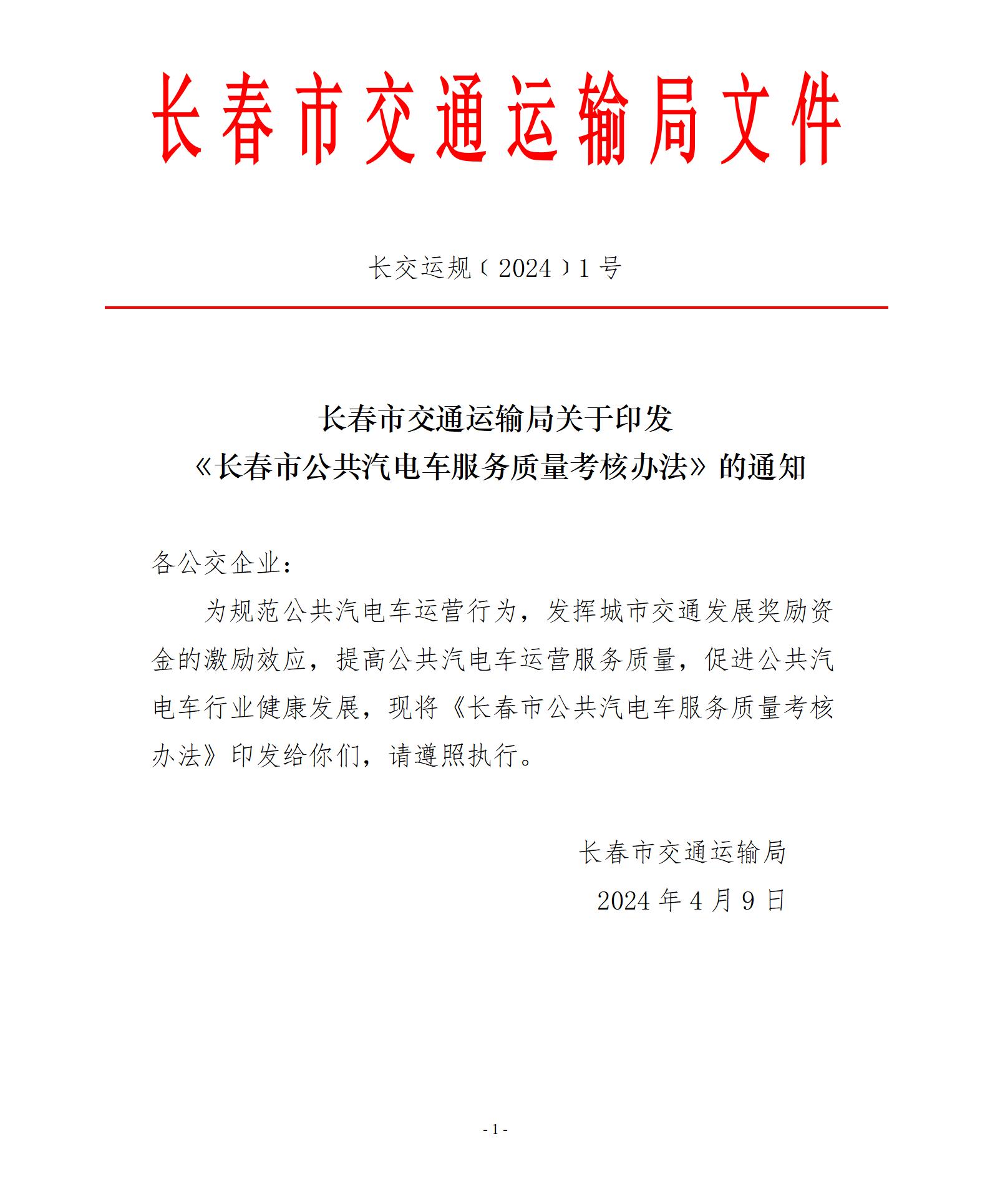 (长交运规﹝2024﹞1号)长春市交通运输局关于印发《长春市公共汽电车服务质量考核办法》的通知.pdf